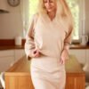 A set consisting of a dress and a sweatshirt made of cotton jersey with added elastane. The fitted knee-length dress emphasizes the feminine silhouette. Paired with an oversized sweatshirt, it creates a more sporty look. Both the dress and sweatshirt have V-necklines. The Dallas set will work well in everyday outfits for work, meeting friends, or a city walk.