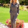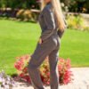 The Mili set consists of a short zip-up blouse with a stand-up collar and loose sweatpants. The set is made of cotton knit enriched with elastane, thanks to which the material does not deform during wearing and washing. The blouse, fastened with a zipper and an elastic band at the waist, can successfully replace a light jacket. Both the blouse and pants are equipped with pockets, which will work perfectly as storage for small items. The comfortable and practical Mili set is the perfect choice for cooler days. The length of the pants given in the table refers to the inseam length.