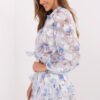 Stylish set consisting of a buttoned shirt and a skirt-trousers is a unique proposition for women who appreciate elegance with a hint of romance. Made of high-quality material with a floral pattern and decorative embroidery, it combines cotton, elastane, and polyester, guaranteeing comfort, breathability, and perfect fit. The shirt has long, slightly puffy sleeves with cuffed cuffs, and its neckline is finished with a classic collar. A delicate ruffle adds feminine charm and lightness to the whole. The skirt-trousers with a short length and wide legs are designed with a high waist, beautifully emphasizing the waist and elongating the silhouette. For additional comfort, they are lined, and the lack of pockets allows you to maintain a slim, elegant fit. This set will work great both for everyday wear and for formal occasions, just pair it with classic shoes and subtle jewelry to create a unique look.