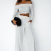Stylish women’s set made of viscose with a touch of elastane is a combination of femininity and comfort. The blouse with long sleeves and a striking Spanish neckline beautifully highlights the shoulders, giving the outfit a subtly sensual character. The long pants with a tie at the waist have been decorated with delicate gathering, adding elegance and lightness. Practical, side pockets increase the functionality of the set. The soft, stretchy material ensures comfort and perfect fit to the silhouette. The set is suitable for both everyday wear and more special occasions.