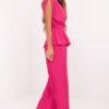 An elegant women’s set made of pleated material is a stylish and modern proposal for various occasions, from everyday outings to formal meetings or work outfits. It consists of a sleeveless blouse with a round neckline and trousers with long, wide legs. The smooth texture of the fabric and the subtle shine of the pleated polyester give the whole outfit lightness and elegance. The high-waisted trousers beautifully accentuate the waist, and the included tie belt allows for additional silhouette shaping. The lack of pockets emphasizes the elegant character of the set and ensures a smooth finish at the hip line. This set is the perfect combination of comfort and class, an excellent choice for women who appreciate style with a touch of modern elegance.