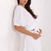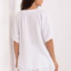 Light and airy set made of natural muslin cotton, perfect for warm days. It consists of a button-up shirt and shorts with ruffles imitating a skirt, creating a cohesive, casual everyday look. The shirt has a loose fit, short sleeves, and a round neckline, providing freedom of movement and a light style. The shorts have wide legs and a high waist with an elastic waistband, guaranteeing comfort and a great fit. Delicate ruffles add a girly charm and lightness to the whole outfit. The smooth texture of the material emphasizes the natural, minimalist character of the set, which will work perfectly for walks, shopping, meetings with friends, or a holiday trip. A must-have in a summer, everyday wardrobe.