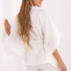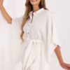 A set consisting of a shirt and shorts is an ideal proposition for everyday, comfortable stylizations. Made of natural, breathable muslin cotton with delicate embroidery on the material, which adds subtle elegance to the whole. The shirt fastens with buttons, with a comfortable tie belt at the waist, has 3/4 sleeves and a stylish stand-up collar at the neckline, giving it lightness and a modern character. The shorts with a simple cut and high waist are equipped with practical, side pockets, and have a comfortable elastic band at the waist, ensuring a perfect fit. The whole creates a coherent and comfortable set, perfect for summer days and everyday occasions.