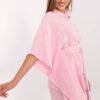 A set consisting of a shirt and shorts is an ideal proposal for everyday, comfortable stylizations. Made of natural, breathable muslin cotton with delicate embroidery on the material, which adds subtle elegance to the whole. The shirt, buttoned up, with a comfortable belt to tie at the waist, has 3/4 sleeves and a stylish stand-up collar at the neckline, giving it lightness and a modern character. The shorts, with a simple cut and high waist, are equipped with practical, side slip pockets, and have a comfortable elastic waistband, guaranteeing a perfect fit. The whole creates a coherent and comfortable set, perfect for summer days and everyday occasions.