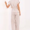 Stylish women’s set consisting of a shirt and pants is the perfect combination of comfort and elegance for everyday wear. Made of a breathable blend of viscose and linen, it ensures comfortable wearing even on warmer days. The smooth material and classic collar give the set a timeless, neat look. The button-up shirt has short sleeves and a practical pocket at chest height. An additional belt for tying at the waist allows you to adjust the fit to your silhouette and highlight feminine shapes. The pants with straight legs, a tie at the waist, and a high waist are equipped with side, slip-in pockets, which increases the functionality of the set. An excellent choice for everyday wear and work – light, comfortable, and stylish.
