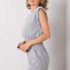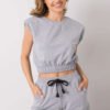 Women’s set consisting of a sweatshirt and shorts is an ideal proposal for everyday wear and sporty styling. Smooth, uniform material gives the whole a minimalist, modern character. The cropped sweatshirt with a round neckline and padded shoulders subtly emphasizes the silhouette, adding structure to it. Sleeveless design ensures freedom of movement and comfort on warmer days. The shorts with a simple cut and medium (regular) waistline have side pockets and practical drawstrings in the waist for individual adjustment. Made of a blend of cotton, polyester, and elastane, the set combines natural softness with material flexibility and durability.