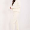 This casual women’s set is an ideal proposition for cooler days, stylish, comfortable, and pleasantly enveloping. Made of high-quality blend of wool, viscose, angora, and polyester, it provides excellent thermal comfort, softness, and durability. The zip-up hoodie has a practical hood, long sleeves, and large front patch pockets that add character and functionality. Its simple, smooth design makes it perfect to combine with various accessories and will work well at home or on a walk. The pants with long, tapered legs have a high waist and a tie at the waist, making them fit the silhouette perfectly. Side slip pockets add practicality without disrupting the minimalist form. This set is perfect for everyday activities, combining freedom of movement, warmth, and a trendy look in one outfit.