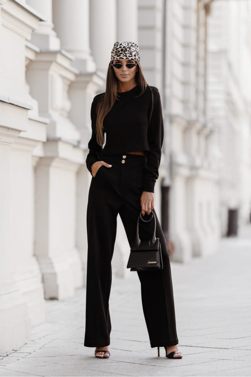 Discover elegance and comfort with the CARMEN black sets. This unique set consists of a blouse and trousers that perfectly combine comfort and fashionable design. Thanks to carefully selected materials, 95% viscose and 5% elastane, it not only ensures pleasant wearing, but also excellent fit to the silhouette. The trousers in the set also offer exceptional comfort and style. The black CARMEN set is the perfect solution for any occasion. It will work well in everyday stylizations as well as for special outings. Choose this set to combine elegance with comfort and emphasize your unique style. This product will become an integral part of your wardrobe.