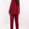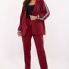 The women’s casual set is the perfect combination of comfort and modern look. Made of extremely soft, delicate, and pleasant to the touch material, it provides maximum wearing comfort. The jacket, fastened with a button and with long sleeves, is decorated with ornamental stripes and a patch at chest height, giving the whole a fashionable, sporty-elegant character. The trousers with tapered legs and a high waist have practical side pockets and a tie at the waist, allowing them to be adjusted to the silhouette. Stripes along the legs emphasize the dynamic style of the set. The set will work perfectly for everyday smooth, stylish, and exceptionally comfortable.
