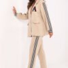Women’s casual set is the perfect combination of comfort and modern look. Made of extremely soft, delicate and pleasant to the touch material, it provides maximum comfort when wearing. The jacket, buttoned with long sleeves, is decorated with ornamental stripes and a patch at chest height, giving the whole a fashionable, sporty-elegant character. Trousers with tapered legs and a high waist have practical side pockets and a tie at the waist, allowing them to be adjusted to the silhouette. Stripes along the legs emphasize the dynamic style of the set. The set is perfect for everyday smooth, stylish and exceptionally comfortable.