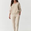This women’s tracksuit set is the perfect combination of comfort and stylish, everyday look. Made of high-quality material consisting of 95% cotton and 5% elastane, it provides softness, flexibility, and breathability, making it perfect for all year round. The sweatshirt has a loose, relaxed fit with dropped shoulder seams, giving it a modern character and making it fit perfectly on any silhouette. A small, embroidered logo is placed on the front, subtly emphasizing the branded character of the set. Fitted pants with an elastic waist and comfortable side pockets are an ideal choice for everyday wear, combining functionality with a feminine cut. The pants have ribbed cuffs at the hem, ensuring they stay in place and accentuate the legs. This set works well as both a loungewear outfit and a city look. Minimalist design, perfect fit, and everyday comfort are essential elements of a modern wardrobe!