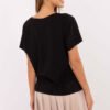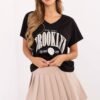 Casual women’s set consisting of a t-shirt and pleated skirt, perfect for everyday styling. The t-shirt made of soft cotton with elastane has short sleeves, a V-neck, and a trendy print on the front, which adds character to the whole outfit. The high-waisted mini skirt is made of the same comfortable material and has shorts sewn in, providing freedom of movement. The pleated construction gives lightness and feminine charm, creating a set that combines comfort with a trendy casual style.