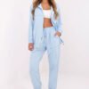 Women’s tracksuit set in casual style, perfect for everyday occasions. Made of cotton with elastane, it ensures comfort and freedom of movement. The zip-up hoodie has a practical hood and slip-in pockets, and the subtle print adds a fashionable character to the whole. The long-legged pants with cuffs have a high waist and a waist tie for perfect fit. Slip-in side pockets make the set not only comfortable, but also functional. It is a perfect choice for women who appreciate style and comfort in one.