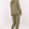 Women’s casual tracksuit set, perfect for everyday occasions. Made of cotton with added elastane, it provides comfort and freedom of movement. The zip-up hoodie has a practical hood and slip pockets, while the subtle print adds a fashionable character to the whole. The sweatpants with long cuffs have a high waist and a waistband with a tie, ensuring a perfect fit. The slip side pockets make the set not only comfortable but also functional. It is a perfect choice for women who appreciate style and comfort in one.