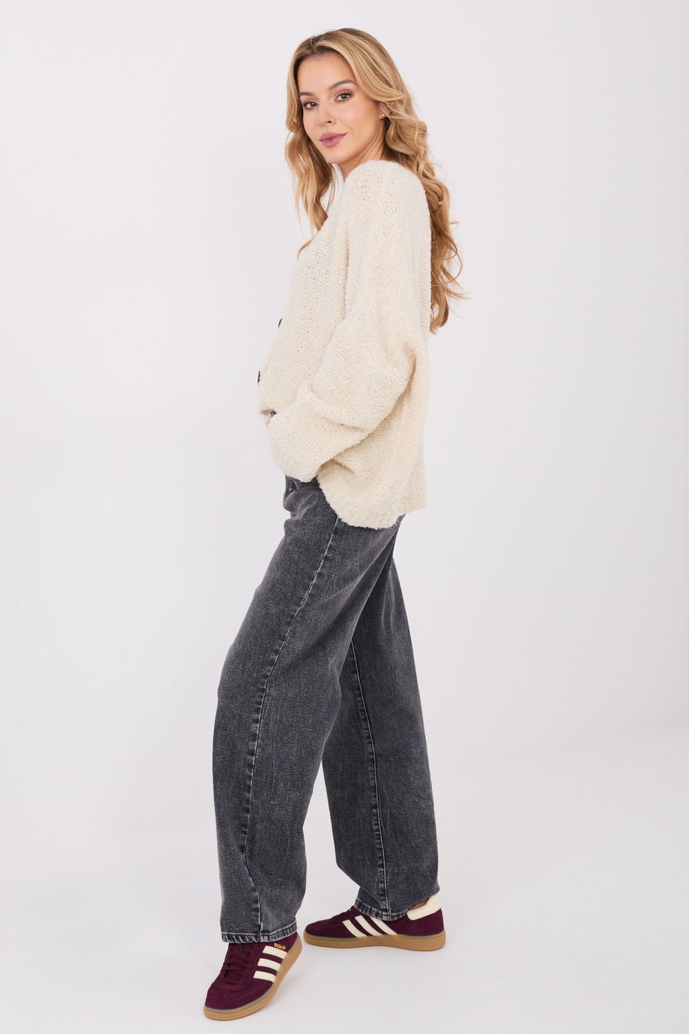 Women’s set with a sweater and pants is a stylish proposition for women who appreciate elegance and comfort in their everyday stylings. Made of a soft blend of viscose and polyester, it delights with a smooth texture and comfort of wearing. The sweater fastened with snaps with a V-neck subtly emphasizes the feminine character, while the high-waisted pants with wide legs guarantee comfort and a fashionable look. The sewn-in elastic band at the waist ensures a perfect fit, and decorative buttons on the top of the pants add an elegant finish to the whole. The set will work great both for everyday wear, for work, and in more sophisticated stylings.