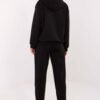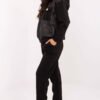 Stylish tracksuit set consisting of a hoodie and pants, perfect for everyday casual stylizations. Made of high quality viscose with a varied texture, from a soft, delicate and exceptionally pleasant to the touch buttery material, which guarantees maximum wearing comfort. The hoodie has long sleeves and a practical hood, and its front is adorned with decorative quilting, giving the whole a modern character. The model is fastened with a zipper, which increases usability. There are pockets with flaps at chest height, decorated with elegant brooches, adding subtle originality and stylish finish. The pants have a high waist, tapered legs, and an elastic waistband with an additional tie for a perfect fit and comfort. They are also equipped with side, slip-in pockets, making them practical for everyday wear. Long, comfortable pants that fit beautifully on the silhouette. The set enchants with a combination of comfort, functionality, and fashionable details, perfect for women who appreciate a stylish look in a casual style.