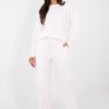 Women’s velour set consisting of a hoodie and trousers, made of soft and pleasant to the touch fabric of cotton and polyester. The hoodie has a classic cut with long sleeves and a round neckline, perfect for everyday, casual stylizations. The trousers have straight, long legs with a high waist, equipped with practical side pockets. The set is complemented by drawstrings with delicate zircons, adding a subtle, elegant glow to the complete outfit. The smooth pattern and comfortable fit make the set perfect for everyday wear and home relaxation.