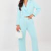 Stylish tracksuit set: a blazer plus pants that combine elegance with everyday comfort. Made from an exceptionally pleasant to the touch material like soft butter, delicate, and smooth, it provides maximum comfort and a great fit to the silhouette. The blazer with lapels and a collar, buttoned up, gives the whole a modern, casual character. The long sleeve adorned with buttons is a stylish detail that emphasizes the refined finish. The high-waisted pants with long, straight legs and a tied waist guarantee comfort and freedom of movement. The model is equipped with side, slip pockets that increase the functionality of the set. The smooth pattern and carefully selected blend of polyester, viscose, and elastane make the set perfect for both daily styling and work in a fashionable, comfortable version. It is an ideal proposal for women who value style, comfort, and versatility in one set.