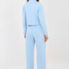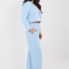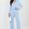 Stylish tracksuit set: blazer and trousers, which combine elegance with everyday comfort. Made of exceptionally pleasant to the touch material, soft, delicate and smooth like butter provides maximum comfort and great fit to the silhouette. The blazer with lapels and collar, buttoned up, gives the whole a modern, casual character. The long sleeve decorated with buttons is a stylish detail that emphasizes the well-finished look. Trousers with a high waist, long, straight legs and a tied waist ensure comfort and freedom of movement. The model is equipped with side, slip pockets, which increase the functionality of the set. The smooth pattern and carefully chosen blend of polyester, viscose and elastane make the set perfect for both everyday stylizations and work in a fashionable, comfortable edition. It is an ideal proposition for women who appreciate style, comfort and versatility in one set.