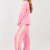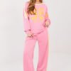 Women’s tracksuit set consisting of a sweatshirt and pants is a comfortable and stylish proposal for everyday casual stylings. The model will work perfectly both for everyday wear and for walks or relaxation, combining a trendy look with maximum wearing comfort. Decorative inscriptions and numbers placed on the front of the sweatshirt and on the sleeves give the whole a sporty, modern character. The set is made of high-quality polyester, viscose, and elastane blend, which ensures softness, elasticity, and a good fit to the silhouette. The sweatshirt has long sleeves and a classic, round neckline. Pants with long, wide legs and a high waist guarantee comfort and freedom of movement. Practical, side slip pockets increase the functionality of the set. An additional asset are stripes on the legs and sleeves, which emphasize the sporty style and visually slim down the silhouette.