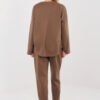 Ladies’ tracksuit set consisting of a sweatshirt and pants is an ideal proposition for everyday casual stylizations, combining comfort with minimalist design. The smooth cut makes the set versatile and works great both at home and during city outings or walks. The set is made of a high-quality blend of polyester, viscose, and elastane. The buttery soft material is extremely soft, delicate, and exceptionally pleasant to the touch, providing maximum comfort when wearing. The sweatshirt with long sleeves and a classic, round neckline features a subtle patch placed at the bottom on the front left side, adding a modern accent to the whole. The pants with long length and tapered legs fit perfectly on the silhouette. The high waist and drawstrings in the waist allow for a perfect fit, while the side pockets increase the functionality of the set.