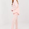 Women’s tracksuit set consisting of a sweatshirt and pants is the perfect proposal for everyday casual stylizations, combining comfort with minimalist design. The smooth cut makes the set versatile and works great both in the comfort of home and during outings in the city or walks. The set is made of high-quality polyester, viscose, and elastane blend. The buttery fabric is extremely soft, delicate, and exceptionally pleasant to the touch, providing maximum wearing comfort. The long-sleeved sweatshirt with a classic, round neckline has a subtle patch placed at the bottom on the front left side, adding a modern accent to the whole. The full-length pants with tapered legs fit perfectly on the silhouette. The high waist and drawstrings in the waist allow for a perfect fit, while the side slip pockets increase the functionality of the set.