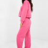 A tracksuit set consisting of a sweatshirt and pants is a comfortable proposition for everyday stylizations in a casual style. Shorter than a standard sweatshirt with long sleeves and a collar gives the whole a modern character, and embroidered inscriptions on the front are a fashionable, decorative accent. Pants with long, straight legs and a high waist provide comfort and freedom of movement. The waist features a tie for individual adjustment, and side pockets increase the functionality of the model. The set is made of a combination of polyester, elastane, and viscose, making it soft, elastic, and pleasant to wear. It is an ideal choice for everyday wear, both for home relaxation and casual outings.