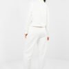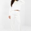 The tracksuit set consisting of a sweatshirt and pants is a comfortable proposal for everyday styling in a casual style. Shorter than the standard sweatshirt with long sleeves and a collar gives the whole a modern character, and embroidered inscriptions on the front are a fashionable, decorative accent. Pants with long, straight legs and a high waist ensure comfort and freedom of movement. The waist has a tie for individual adjustment, and side pockets increase the functionality of the model. The set is made of a combination of polyester, elastane, and viscose, making it soft, flexible, and pleasant to wear. It is an ideal choice for everyday wear, both for home relaxation and for casual outings.