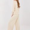 Women’s tracksuit made of exceptionally soft butter-like material is the perfect combination of comfort and style for everyday wear. The fabric made of a blend of viscose, polyester, and elastane is extremely delicate, elastic, and pleasant to the touch, making the set perfect for both home and city outings. The set consists of a loose, casual-cut blouse and high-waisted pants with an elastic waistband for a perfect fit. The wide legs give the whole outfit a light and modern look, while the side slip pockets emphasize the practical nature of the set.