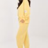 Stylish tracksuit set in a casual version is the perfect choice for everyday stylizations. The smooth pattern gives it a universal character, making it perfect for relaxation, walks, and urban outfits. The long-sleeved sweatshirt with a round neckline ensures comfort and a timeless look. An additional advantage is the subtle patch placed on the left sleeve, which adds a fashionable accent to the whole. The trousers with long legs finished with cuffs perfectly fit the silhouette. The high waist emphasizes the waist and increases comfort, while the side slip pockets add functionality. The set is made of a soft and elastic blend of viscose and elastane, guaranteeing wearing pleasure, freedom of movement, and perfect fit to the silhouette. It is a comfortable and stylish set for everyday wear. The buttery material is soft, delicate, and exceptionally pleasant to the touch.