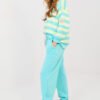 Stylish tracksuit set in a casual version is the perfect proposal for everyday wear. The combination of comfort and fashionable details makes the outfit great for daily activities, walks, or relaxation. The long-sleeved sweatshirt with a round neckline stands out with stripes on the material, giving it a modern character. An additional accent is the subtle patch on the left sleeve, emphasizing the stylish look of the model. The high-waisted pants with long legs ending in cuffs perfectly fit the silhouette. There is an elastic band and drawstrings in the waist, allowing for individual adjustment. Side slip pockets increase the functionality of the set. The whole set is made of exceptionally soft butter-like fabric blend of viscose, cotton, and elastane. The fabric is delicate, elastic, and incredibly pleasant to the touch, providing maximum comfort for all-day wear.