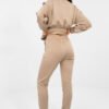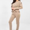 Stylish women’s set consisting of a sweatshirt and pants, perfect for everyday wear and for work in a less formal setting. The casual character of the set combines comfort with a modern, minimalist design. The model is made of a high-quality blend of polyester, viscose, and elastane, making the material soft, flexible, and pleasant to wear. The smooth fabric emphasizes the versatile style of the set and makes it easy to create various stylizations. The sweatshirt with long sleeves and a classic, round neckline provides comfort and a timeless look. The pleats at the waist add lightness and subtly emphasize the silhouette. The high-waisted pants with an elastic waistband ensure a comfortable fit. The long legs ending with cuffs give a sporty touch, and the side slip pockets increase functionality. This practical and stylish set will work well both during daily duties and at work, providing comfort throughout the day. The buttery soft material is soft, delicate, and exceptionally pleasant to the touch.