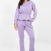 Stylish women’s set consisting of a sweatshirt and pants, perfect for everyday wear and for work in a less formal setting. The casual character of the set combines comfort with modern, minimalist design. The model is made of high-quality polyester, viscose, and elastane blend, making the material soft, flexible, and comfortable to wear. The smooth fabric emphasizes the universal style of the set and makes it easy to create various stylings. The sweatshirt with long sleeves and a classic, round neckline provides comfort and a timeless look. The gathers at the waist add lightness to it and subtly emphasize the silhouette. The high-waisted pants with an elastic waistband guarantee a comfortable fit. The long legs finished with cuffs give a sporty touch, and the side slip pockets increase functionality. This practical and stylish set will work well for both daily duties and work, providing comfort all day long. The buttery soft material is soft, delicate, and exceptionally pleasant to the touch.