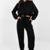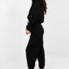 Women’s tracksuit set consisting of a sweatshirt and pants is an excellent everyday proposition for women who appreciate comfort and a casual style. The smooth material emphasizes the minimalist character of the set and makes it extremely versatile. Made of high-quality blend of viscose and elastane, it delights with a buttery soft, delicate and exceptionally pleasant to the touch fabric. The material beautifully drapes on the silhouette, is elastic, and ensures maximum comfort throughout the day. The sweatshirt with long sleeves and a classic, round neckline has a tie at the bottom, which allows for adjustment and subtle waist emphasis. High-waisted pants with an elastic waist guarantee a perfect fit. Long legs finished with cuffs give a sporty character, and side slip pockets increase functionality. It is an ideal choice for everyday outings, walks, or relaxation in the comfort of your home – a stylish, comfortable, and extremely pleasant to wear set that will quickly become a favorite in your wardrobe.