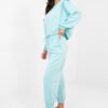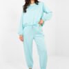 Women’s tracksuit set consisting of a sweatshirt and pants is an excellent everyday proposition for women who appreciate comfort and a casual style. The smooth material emphasizes the minimalist character of the set and makes it extremely versatile. Made of high-quality blend of viscose and elastane, it delights with a buttery soft, delicate and exceptionally pleasant to the touch fabric. The material beautifully lays on the silhouette, is elastic and provides maximum comfort for wearing throughout the day. The sweatshirt with long sleeves and a classic, round neckline has a tie at the bottom, which allows for adjustment and subtle emphasis on the waist. High-waisted pants with an elastic waist guarantee a perfect fit. Long legs finished with cuffs give a sporty character, and side slip pockets increase functionality. This is the perfect choice for everyday outings, walks or relaxation in the comfort of your home – a stylish, comfortable and extremely pleasant to wear set that will quickly become a favorite in your wardrobe.