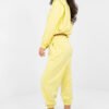 Women’s tracksuit set consisting of a sweatshirt and pants is an excellent everyday proposition for women who appreciate comfort and a casual style. The smooth material emphasizes the minimalist character of the set and makes it extremely versatile. Made of high-quality viscose and elastane blend, it impresses with a buttery soft, delicate and exceptionally pleasant to the touch fabric. The material beautifully drapes on the silhouette, is elastic and provides maximum comfort for wearing throughout the day. The sweatshirt with long sleeves and a classic, round neckline has a tie at the bottom, which allows for adjustment and subtle waist emphasis. High-waisted pants with an elastic waist guarantee a perfect fit. Long legs with cuffs give a sporty character, and side slip pockets increase functionality. It is an ideal choice for everyday outings, walks, or relaxation in the comfort of your home – a stylish, comfortable, and incredibly pleasant to wear set that will quickly become a favorite wardrobe item.