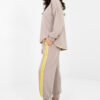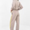 Stylish tracksuit set consisting of a hoodie and pants is the perfect everyday option for those who appreciate comfort in a fashionable edition. Made of high-quality blend of polyester, viscose and elastane, the material is soft, elastic and pleasant to the touch, providing comfort throughout the day. The hoodie with a classic, round neckline and long sleeves fits perfectly into a casual style. The smooth pattern gives the whole a universal character, making it easy to match the set with different accessories. High-waisted pants have a practical tie at the waist for individual adjustment. The model with long legs finished with cuffs provides comfort and a sporty look. Side, slip pockets increase functionality, and trendy stripes on the sides of the legs add a dynamic and modern accent to the whole. It is a perfect choice for everyday outings, walks or relaxation in the comfort of your home – a combination of comfort and style in one set.