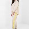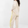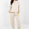 Stylish tracksuit set consisting of a hoodie and pants is an ideal everyday proposition for those who appreciate comfort in a fashionable edition. Made of high-quality polyester, viscose, and elastane blend, the material is soft, elastic, and pleasant to the touch, providing comfort for the whole day. The hoodie with a classic, round neckline and long sleeves fits perfectly into a casual style. The smooth pattern gives the whole a universal character, making it easy to match the set with various accessories. High-waisted pants have a practical tie in the waist, allowing for individual adjustment. The model with long legs finished with cuffs provides comfort and a sporty look. Side, slip pockets increase functionality, and fashionable stripes on the sides of the legs add a dynamic and modern accent to the whole. It is an excellent choice for everyday outings, walks, or relaxation in the comfort of your own home – a combination of comfort and style in one set.