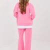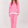 Casual tracksuit set is a perfect choice for women who value comfort and modern minimalism in their everyday wear. The smooth pattern emphasizes the universal character of the set, making it suitable for both daily outings and relaxing at home. Made of high-quality polyester, viscose, and elastane blend, the set ensures comfort, flexibility, and a pleasant fit to the silhouette. The material is soft, durable, and resistant to wrinkles, maintaining an aesthetic look for a long time. The long-sleeved blouse is finished with contrasting inserts, giving it a fashionable character. An additional accent is the patch placed on the front, on the left side at the bottom, highlighting the modern style of the set. The long trousers with straight legs and a high waist beautifully shape the silhouette and provide comfort. There are drawstrings at the waist for perfect adjustment, and side slip pockets increase the functionality of the set. It is a stylish and practical set that combines comfort with timeless simplicity.