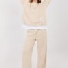 Casual sweat suit is a perfect choice for women who value comfort and modern minimalism in their everyday style. The smooth pattern highlights the universal character of the set, making it suitable for daily outings as well as cozy days at home. Made of high-quality blend of polyester, viscose, and elastane, the set ensures comfort, flexibility, and a pleasant fit to the silhouette. The material is soft, durable, and resistant to wrinkles, maintaining an aesthetic look for a long time. The long-sleeved sweatshirt is finished with contrasting inserts, giving the whole set a fashionable character. An additional accent is the patch placed on the front, on the left side at the bottom, emphasizing the modern style of the set. The long pants with straight legs and a high waist beautifully shape the silhouette and provide comfort. There are drawstrings at the waist for perfect adjustment, while the side slip pockets increase the functionality of the set. This stylish and practical set combines comfort with timeless simplicity.