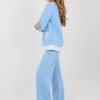 Casual tracksuit set is a perfect choice for women who appreciate comfort and modern minimalism in their everyday outfits. The smooth pattern emphasizes the universal character of the set, making it suitable for daily outings as well as for relaxing at home. Made of high-quality blend of polyester, viscose, and elastane, the set ensures comfort, flexibility, and a pleasant fit to the silhouette. The fabric is soft, durable, and resistant to creases, maintaining an aesthetic look for a long time. The long-sleeved sweatshirt is finished with contrasting inserts, giving it a fashionable character. An additional accent is the patch placed on the front, on the left side at the bottom, highlighting the modern style of the set. The long pants with straight legs and a high waist beautifully shape the silhouette and provide comfort. There are drawstrings at the waist for perfect adjustment, and side pockets increase the functionality of the set. This stylish and practical set combines comfort with timeless simplicity.
