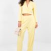 An elegant women’s suit consisting of a short blazer and long trousers is an excellent choice for work and everyday wear. The classic, smooth pattern emphasizes the timeless character of the set, and carefully selected fabric (polyester, viscose, elastane) provides comfort, durability, and a stylish look throughout the day. The short blazer with long sleeves is finished with lapels that give it elegance and a professional character. The double-breasted button closure adds elegance and subtly shapes the silhouette. High-waisted trousers beautifully accentuate the waist, and tapered legs slim the legs. The model without a classic closure, with an elastic band sewn into the waist at the back, guarantees comfort and perfect fit. An additional advantage are practical, side slip pockets. The butter-like material is soft, delicate, and exceptionally pleasant to the touch.