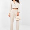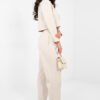 Elegant women’s set consisting of a short blazer and long trousers is an excellent proposal for work and everyday wear. The classic, smooth pattern emphasizes the timeless character of the set, and carefully selected fabric (polyester, viscose, elastane) ensures comfort, durability, and a neat appearance throughout the day. The short blazer with long sleeves is finished with lapels that give it elegance and a professional character. The double-breasted button fastening adds elegance and subtly shapes the silhouette. High-waisted trousers beautifully emphasize the waist, and tapered legs slim the legs. The model without a classic fastening, with an elastic band sewn into the waist at the back, guarantees comfort and a perfect fit. An additional advantage are practical, side slip pockets. The buttery material is soft, delicate, and exceptionally pleasant to the touch.