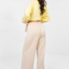 Stylish sweat suit in a casual edition is a perfect proposition for everyday wear. Comfortable and at the same time fashionable set consists of a long-sleeved sweatshirt and long pants with wide legs, creating a comfortable and modern styling. The sweatshirt with a round neckline has been decorated with an eye-catching inscription on the front, which gives the whole character. An additional advantage are decorative stripes on the sleeves, emphasizing the sporty, dynamic style of the model. High-waisted pants beautifully shape the silhouette and provide comfort when wearing. An elastic band has been sewn in the waist, so the pants fit perfectly to the waist. Wide legs give the whole a relaxed, fashionable look, and the side slip pockets increase the functionality of the set. The set is made of a pleasant to the touch blend of polyester, viscose and elastane, the material is soft, elastic and resistant to creasing, which makes it ideal for everyday use. An ideal choice for women who value comfort, freedom and a fashionable look in their everyday stylings.