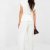 Stylish women’s set combining elegance with modern design. The set consists of a vest with short sleeves and wide-legged trousers, creating a cohesive and eye-catching styling perfect for work, everyday wear, and formal occasions. The vest with a wrap neckline beautifully emphasizes the neck line and visually slims the silhouette. The model is fastened with a button and has a thin belt at the waist, allowing for individual adjustment and accentuating feminine shapes. The smooth pattern gives the whole a timeless character. High-waisted trousers perfectly shape the silhouette, providing comfort and an elegant look. The elastic band sewn in the waist ensures comfort and a perfect fit. Wide, long legs add lightness and class to the styling, while practical side pockets increase functionality. The set is made of high-quality polyester and viscose blend, the material is pleasant to the touch, slightly elastic, and fits well on the silhouette. This is an ideal proposal for women who value elegance, comfort, and versatility in one styling.