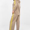 Comfortable and stylish women’s tracksuit set is an ideal proposition for everyday wear. The casual character of the set makes it perfect for daily activities, walks, or relaxation, combining comfort with a fashionable look. The long-sleeved sweatshirt is equipped with a practical hood and a zipper closure, ensuring comfort and adjustability. The model has side pockets, which increase functionality. Decorative stripes on the sleeves give the whole set a sporty, dynamic character. High-waisted pants with long, wide legs guarantee freedom of movement and a modern look. Stripes running along the legs emphasize the sporty style of the set and visually slim the silhouette. The set is made of a pleasant to touch blend of polyester, viscose, and elastane. The material is elastic, durable, and resistant to wrinkles, making the set perfect for everyday use. Comfortable and fashionable set that combines sporty freedom with a modern style. The buttery soft material is soft, delicate, and exceptionally pleasant to the touch.