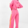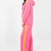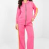 Comfortable and stylish women’s tracksuit set is an ideal proposal for everyday wear. The casual character of the set makes it perfect for daily activities, walks or relaxation, combining comfort with a fashionable look. The long-sleeved sweatshirt is equipped with a practical hood and a zip fastening, ensuring comfort and adjustability. The model has side slip pockets that increase functionality. Decorative stripes on the sleeves give the whole set a sporty, dynamic character. The high-waisted pants with long, wide legs guarantee freedom of movement and a modern look. Stripes running along the legs emphasize the sporty style of the set and visually slim down the silhouette. The set is made of a pleasant to the touch blend of polyester, viscose, and elastane. The material is elastic, durable, and resistant to wrinkles, making the set perfect for everyday use. Comfortable and fashionable set that perfectly combines sporty freedom with modern style. The buttery soft material is soft, delicate, and exceptionally pleasant to the touch.