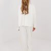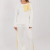 Stylish women’s casual tracksuit set is a perfect proposal for everyday wear. The combination of comfort with fashionable details makes the set perfect for daily activities, walks, or casual meetings. The set consists of a long-sleeved sweatshirt with a classic round neckline and long pants with wide legs. The smooth pattern emphasizes the universal character of the set, making it easy to match with various accessories. The sweatshirt is decorated with an eye-catching contrasting bow on the front, adding a feminine and subtly elegant touch to the whole outfit. The high-waisted pants beautifully shape the waist, and the elastic waistband ensures a comfortable fit to the silhouette. Additional advantages are practical side slip pockets and stripes running along the legs, giving a sporty character and visually slimming the legs. The set is made of a pleasant to the touch blend of polyester, viscose, and elastane. The material is soft, elastic, and resistant to creases, ensuring comfort throughout the day. This is a comfortable and feminine set that combines sporty freedom with fashionable details.