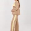 Stylish women’s casual tracksuit set is the perfect choice for everyday wear. The combination of comfort with trendy details makes this set perfect for daily activities, walks, or casual meetings. The set consists of a long-sleeved sweatshirt with a classic, round neckline and long pants with wide legs. The smooth pattern emphasizes the versatile character of the set, making it easy to match with various accessories. The sweatshirt is decorated with an eye-catching contrasting bow on the front, adding a feminine and subtly elegant touch to the whole look. The high-waisted pants beautifully shape the waist, and the elastic waistband ensures a comfortable fit to the silhouette. Additional features are practical side pockets and stripes running along the legs, giving a sporty character and visually slimming the legs. The set is made of a pleasant to the touch blend of polyester, viscose, and elastane material is soft, elastic, and resistant to wrinkles, ensuring comfort throughout the day. This is a comfortable and feminine set that combines sporty freedom with trendy details.