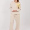 Stylish women’s tracksuit in a casual version is the perfect proposal for everyday wear. The combination of comfort with fashionable details makes the set perfect for daily activities, walks, or casual meetings. The set consists of a long-sleeved sweatshirt with a classic round neckline and long pants with wide legs. The smooth pattern emphasizes the universal character of the set, making it easy to match with different accessories. The sweatshirt is decorated with an eye-catching contrast bow on the front, adding a feminine and subtly elegant accent to the whole. The high-waisted pants beautifully shape the waist, and the elastic band sewn into the waist ensures a comfortable fit to the silhouette. Additional advantages are practical side pockets and stripes running along the legs, giving a sporty character and visually slimming the legs. The set is made of a pleasant to the touch blend of polyester, viscose, and elastane material is soft, elastic, and resistant to creases, ensuring comfort throughout the day. It is a comfortable and feminine set that combines sporty freedom with fashionable details.